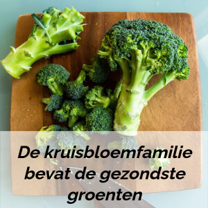 Welke zijn dan het gezondst? De soorten die onder de kruisbloemenfamilie vallen. Denk dan aan broccoli, boerenkool, spruitjes, bloemkool, asperges en witlof.